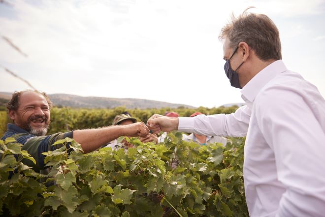 Μαζί με τους αγρότες που δούλευαν στο κάμπο φωτογραφήθηκε ο πρωθυπουργός της χώρας, Κυριάκος Μητσοτάκης κατά την επίσκεψή του στα Φάρσαλα την Δευτέρα το πρωί.