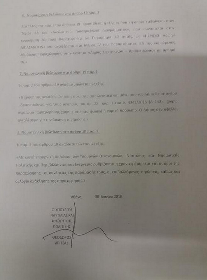 Ο υπουργός Ναυτιλίας Θ. Δρίτσας κατέθεσε τροποποιήσεις σε όλα τα άρθρα που ζήτησε η COSCO. Πληροφορίες φέρουν ικανοποιημένη την κινεζική πλευρά. Επίθεση Δρίτσα σε Μέσα Ενημέρωσης για 'αγυρτεία'