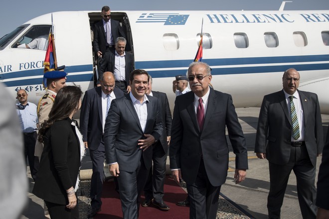 Ο Αλέξης Τσίπρας κατέφθασε στο Κάιρο το πρωί της Τρίτης με το πρωθυπουργικό αεροσκάφος.