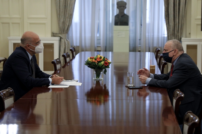 "Κλιμακώνεται η τουρκική επιθετικότητα και πρέπει να σταλεί ένα σαφές μήνυμα μη ανοχής περαιτέρω τετελεσμένων ή προκλήσεων" τόνισε ο κ. Κατρούγκαλος μετά τη συνάντησή του με τον ΥΠΕΞ Νίκο Δένδια.