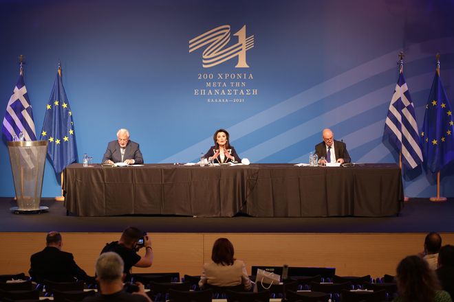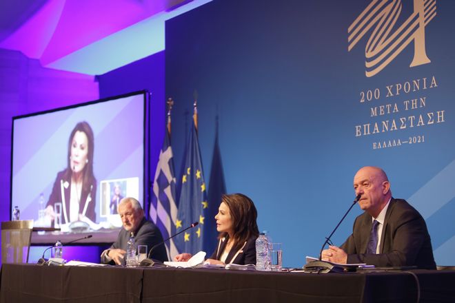 Την πρώτη της συνέντευξη Τύπου παραχώρησε το μεσημέρι της Τετάρτης η επιτροπή “Ελλάδα 2021“. Στο πάνελ την επιτροπή εκπροσώπησαν η πρόεδρος, Γιάννα Αγγελοπούλου-Δασκαλάκη, ο εκτελεστικός γενικός συντονιστής, Μάρτον Σίμιτσεκ και το μέλος του Εκτελεστικού Συμβουλίου, Κώστας Κοντογιαννης.