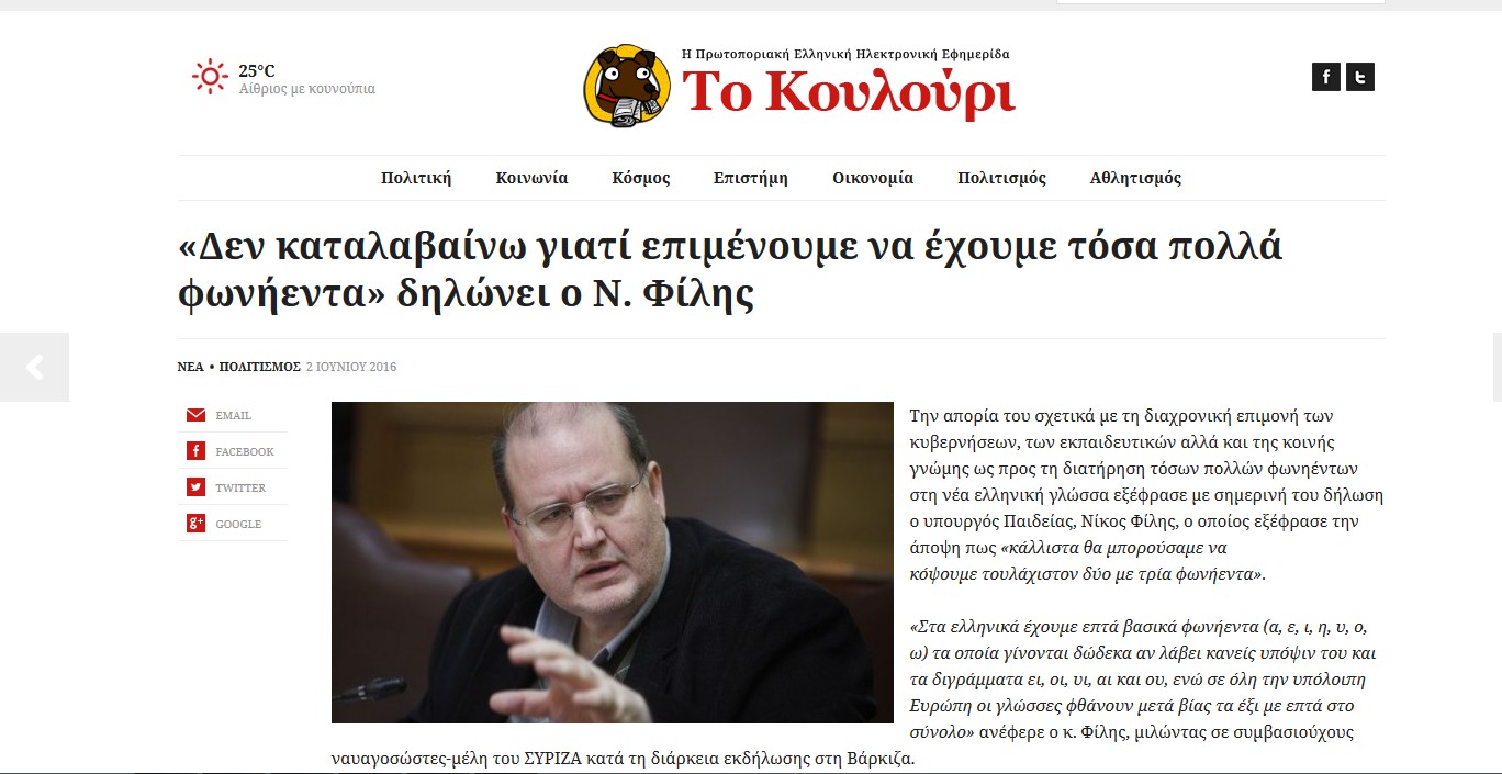 Το δημοσίευμα σημείωνε πως ο Νίκος Φίλης σκέφτεται να καταργήσει τα… φωνήεντα κάτι που φυσικά δεν ισχύει!Ο κ. Γεωργιάδης νόμιζε πως πρόκειται για πραγματική είδηση και έγινε έξαλλος!
