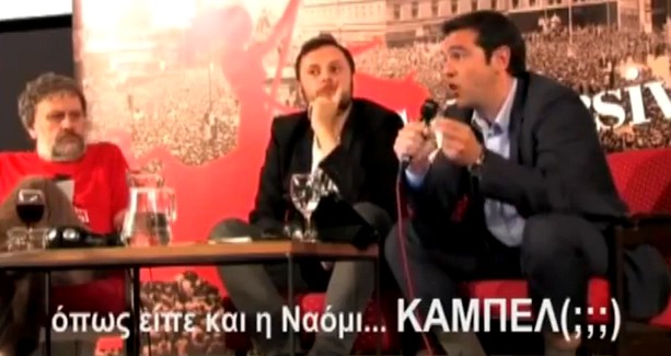 Τη συγγραφέα του δημοφιλούς βιβλίου που αποτυπώνει με γλαφυρό τρόπο την απαρχή της παγκόσμιας οικονομικής κρίσης, Ναόμι Κλάιν με τη “γαζέλα” της πασαρέλας Ναόμι Κάμπελ φαίνεται σε βίντεο – ντοκουμέντοι ότι μπέρδεψε ο αρχηγός της αξιωματικής αντιπολίτευσης, Αλέξης Τσίπρας κατά την επίσημη επίσκεψή του στην Κροατία στα πλαίσια του 6ου Subversive Forum.