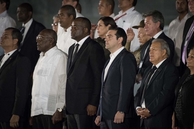 Το παρόν έδωσε ο Έλληνας πρωθυπουργός Αλέξης Τσίπρας στις εκδηλώσεις αποχαιρετισμού του εβληματικού ηγέτη της Κούβας, Φιντέλ Κάστρο που πέθανε τα ξημερώματα του Σαββάτου σε ηλικία 90 ετών.