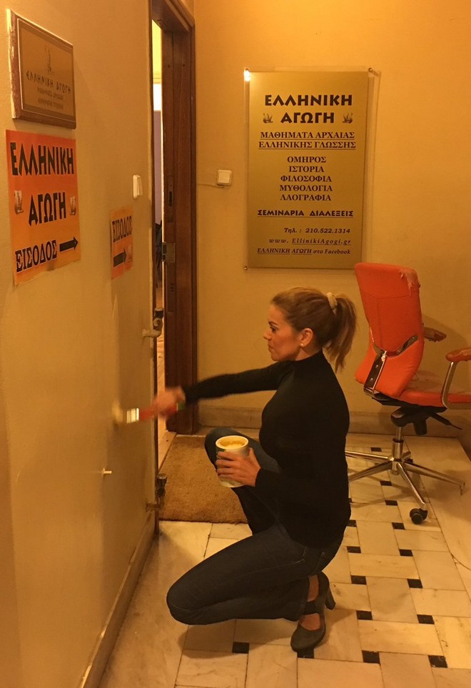 Η είσοδος του φροντιστηρίου του Άδωνι Γεωργιάδη στην Οδό Στουρνάρη απέκτησε ξανά την αρχική της όψη, μετά την παρέμβαση της Ευγενίας Μανωλίδου