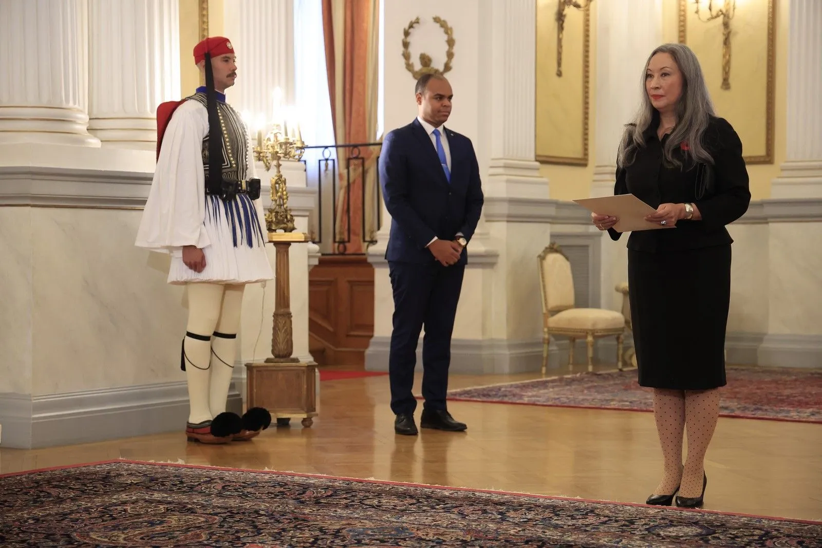 Τα διαπιστευτήριά της στον Πρόεδρο της Δημοκρατίας, Κωνσταντίνο Τασούλα, επέδωσε η νέα πρέσβης των ΗΠΑ, Κίμπερλι Γκίλφοϊλ.