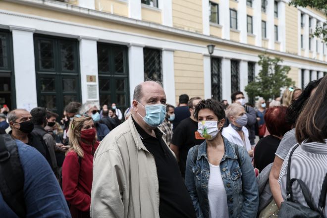 Ο τομεάρχης Παιδείας του ΣΥΡΙΖΑ, Νίκος Φίλης, στα δικαστήρια της Ευελπίδων σε κινητοποίηση κατά της προφυλάκισης 14χρονου μαθητή για συμμετοχή σε κινητοποίηση.