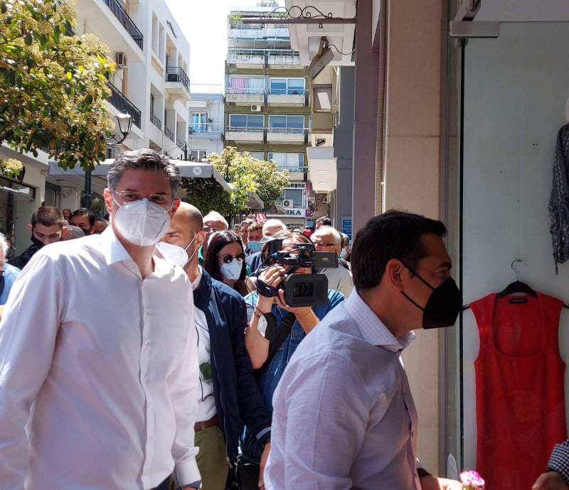 Τον Αλέξη Τσίπρα συνοδεύουν στελέχη, όπως επίσης και ο τοπικός βουλευτής του ΣΥΡΙΖΑ-Π.Σ., Διονύσης Καλαματιανός.