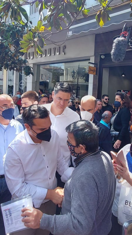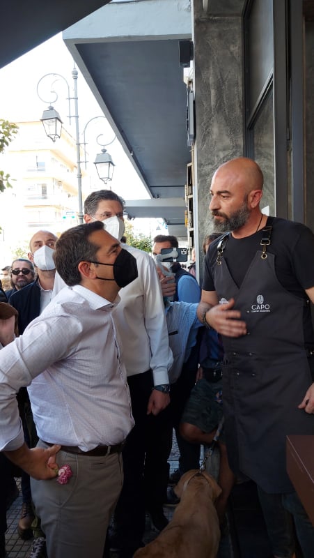 Κατά την άφιξή του ο κ. Τσίπρας συνομίλησε με κόσμο που έσπευσε να τον υποδεχθεί θερμά.