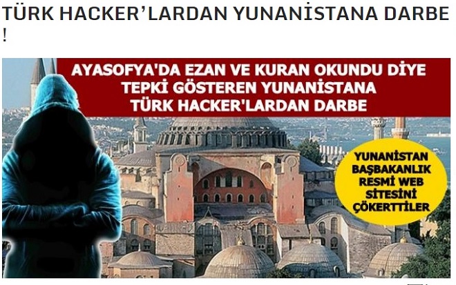 Μάλιστα τουρκικά μέσα αναπαράγουν την είδηση ότι πίσω από την επίθεση στο primeminister.gov.gr. κρύβονται Τούρκοι χάκερς, ως αντίδραση στη στάση της Αθήνας για την υπόθεση της Αγίας Σοφίας.