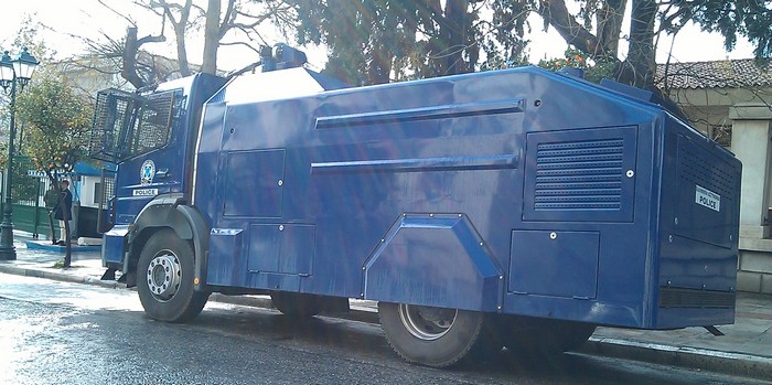 16:28 Αντλία νερού της αστυνομίας στην Ηρώδου του Αττικού