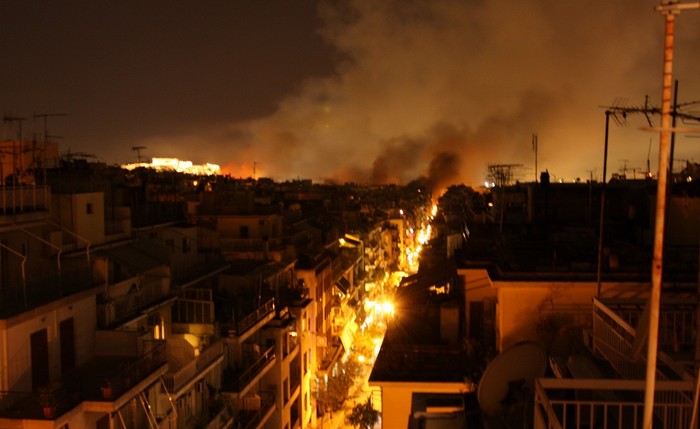 00:07 Ενώ συνεχίζει ο πρωθυπουργός την ομιλία του στη Βουλή, η Αθήνα συνεχίζει να φλέγεται. Τράπεζες και καταστήματα έγιναν στάχτη.