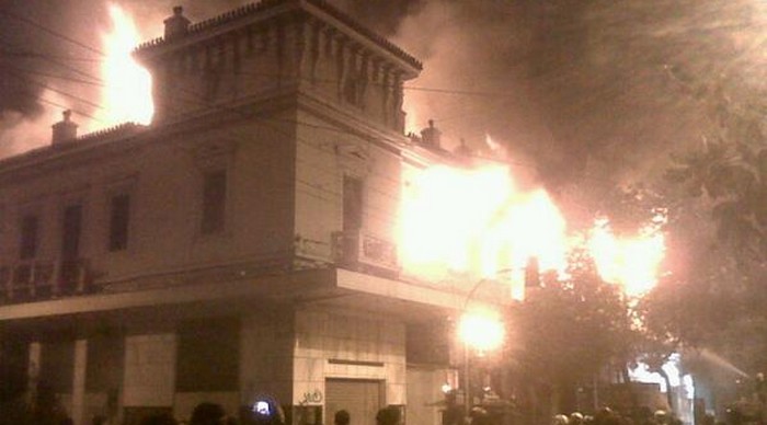 01:27 Εν τω μεταξύ συνεχίζεται η κατάσβεση της πυρκαγιάς που ξέσπασε στην Τράπεζα Κύπρου στην Αθηνάς. Κατέρρευσε η στέγη του κτιρίου. Συνεχίζονται οι λεηλασίες στο κέντρο της Αθήνας.