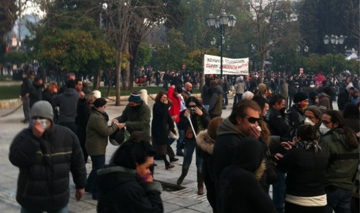 18:12 Απομακρύνονται οι διαδηλωτές όπως όπως, καθώς ο “πόλεμος” κουκουλοφόρων-Ματ βρίσκεται σε πλήρη εξέλιξη. Η ατμόσφαιρα στο Σύνταγμα είναι αποπνικτική, καθώς γίνεται αλόγιστη χρήση χημικών από την αστυνομία, για να αντιμετωπίσουν τη βροχή από πέτρες και μολότοφ.