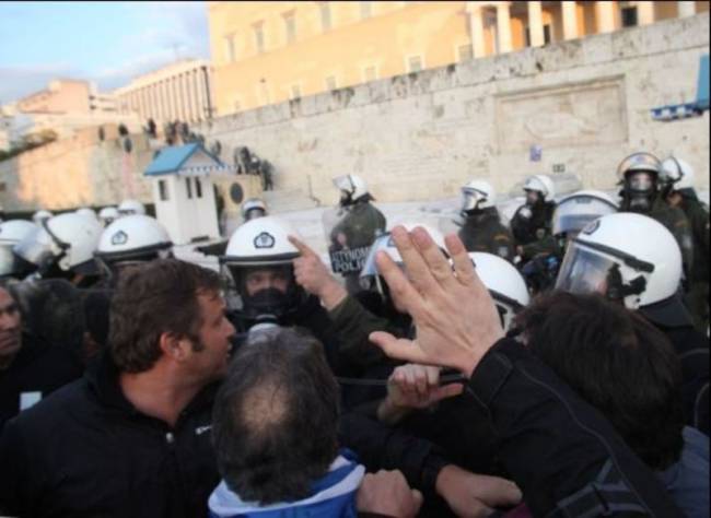 19:42 Εκατοντάδες διαδηλωτές προσπαθούν να επιστρέψουν στην πλατεία Συντάγματος. Οι πολίτες φωνάζουν “Ψωμί, Παιδεία Ελευθερία, η χούντα δεν τελείωσε το ’73”.