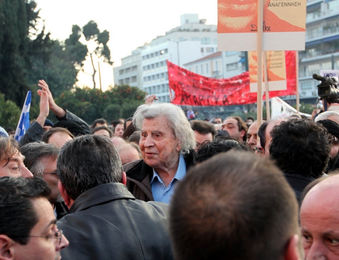 18:49 Και ο Μίκης Θεοδωράκης έδωσε το “παρών” στο Σύνταγμα, μέχρι να αρχίσουν τα επεισόδια.