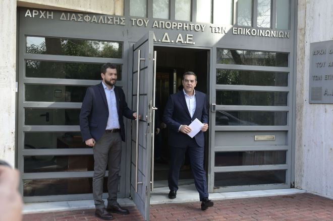Με τον φάκελο των υποκλοπών στο χέρι εξήλθε από την ΑΔΑΕ ο Αλέξης Τσίπρας
