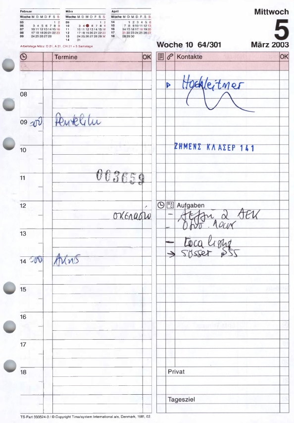 Εκατοντάδες ονόματα “φιγουράρουν” στις πάνω από 800 σελίδες των ημερολογίων, κυρίως στελέχη της κυβέρνησης του Κώστα Σημίτη, όπως ο Γιάννος Παπαντωνίου, ο Άκης Τσοχατζόπουλος, ο γενικός γραμματέας του ΥΠΕΘΑ Σπύρος Τραυλός και ο Θεοδ. Τσουκάτος, αλλά και μέλη της οικογένειας Μητσοτάκη, όπως είναι ήδη γνωστό.