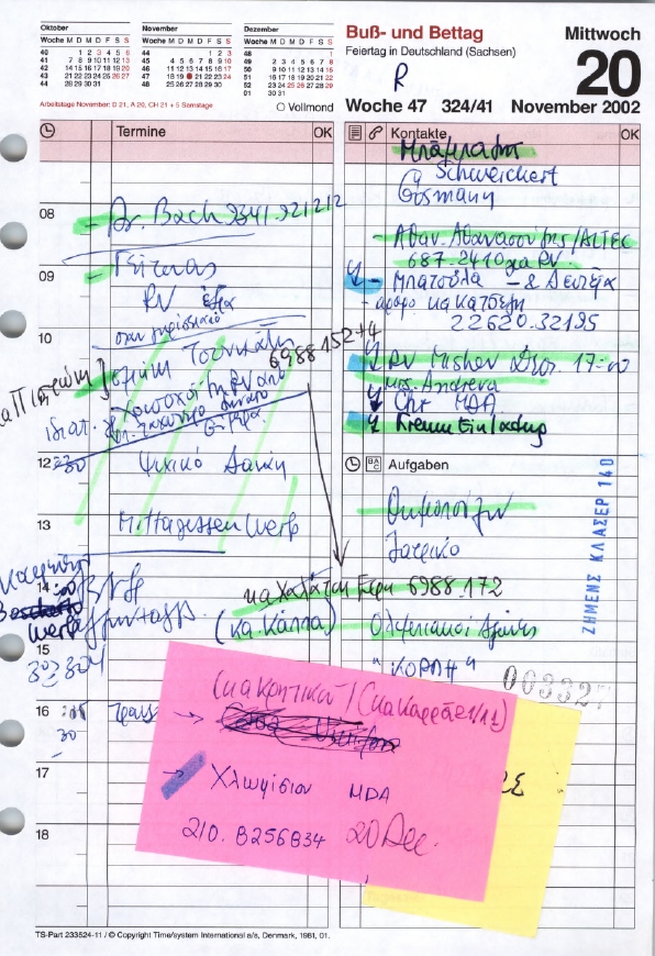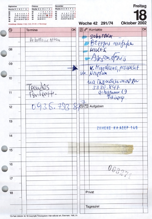 Στις 18 Νοεμβρίου ανοίγουν οι φάκελοι του διαγωνισμού και δύο ημέρες μετά, στις 20 Νοεμβρίου του 2002 από το ημερολόγιο φέρεται να έχει επικοινωνήσει η γραμματέας του κ.Τσουκάτου με το γραφείο του κ.Χριστοφοράκου αφήνοντας μήνυμα να μιλήσει με το Μιχάλη Χρυσοχοϊδη το συντομότερο δυνατό.