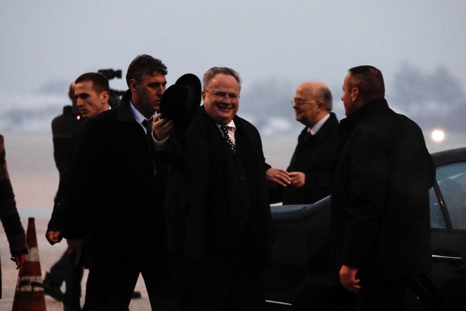 Άφιξη του Έλληνα ΥΠΕΞ, Νίκου Κοτζιά στο αεροδρόμιο των Σκοπίων, στην πρώτη απευθείας πτήση από την Ελλάδα έπειτα από 12 χρόνια/ SOOC Konstantinos Tsakalidis / SOOC