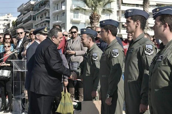 Στο χαιρετισμό του ο υπουργός Εθνικής Άμυνας Πάνος Καμμένος, αφού εξήρε την προσφορά της Πολεμικής Αεροπορίας προς την πατρίδα, επανέλαβε ότι «έχουμε ξεκινήσει όλες τις διαδικασίες για να αποκαταστήσουμε αυτή την τεράστια αδικία, δηλαδή τη μη απονομή τιμής σε εκείνους που έπεσαν υπέρ της πίστεως και της πατρίδος, για τους οποίους μέχρι σήμερα δεν είχε γίνει από την Πολιτεία αυτό που έπρεπε και αρμόζει».
