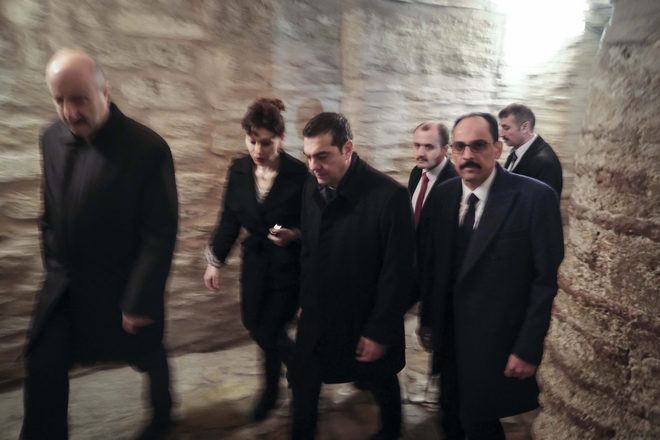 Τον κ. Τσίπρα υποδεχθηκε ο εκπρόσωπος της τουρκικής Δημοκρατίας Ιμπραήμ Καλίν, ο οποίος συνόδευσε τον Έλληνα πρωθυπουργό στην ξενάγηση.