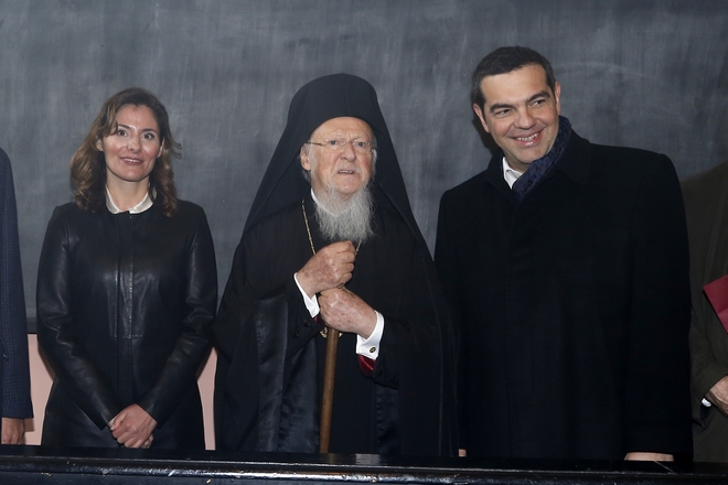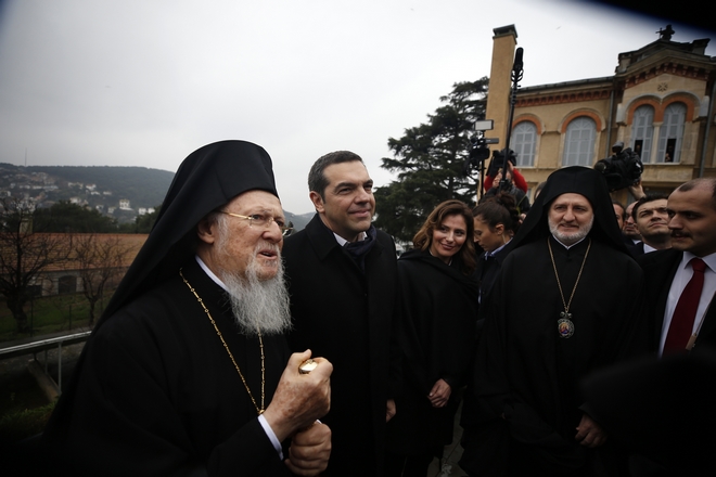 Έπειτα ο Πρωθυπουργός μετέβη στη Θεολογική Σχολή Χάλκης (είναι ο πρώτος εν ενεργεία πρωθυπουργός της Ελλάδας που την επισκέπτεται) και μετά την επίσκεψη συναντήθηκε με τον Οικουμενικό Πατριάρχη Βαρθολομαίο.