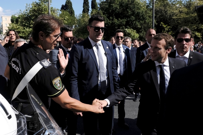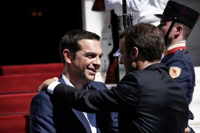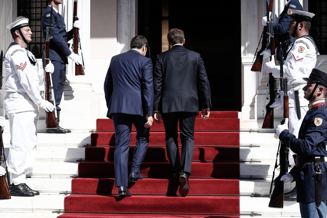 Official reception of the President of France Emmanuel Macron, by the Prime Minister of Greece, Alexis Tsipras, at the Maximos Mansion in Athens, Greece, on September 7, 2017 / , , , , , 7 , 2017