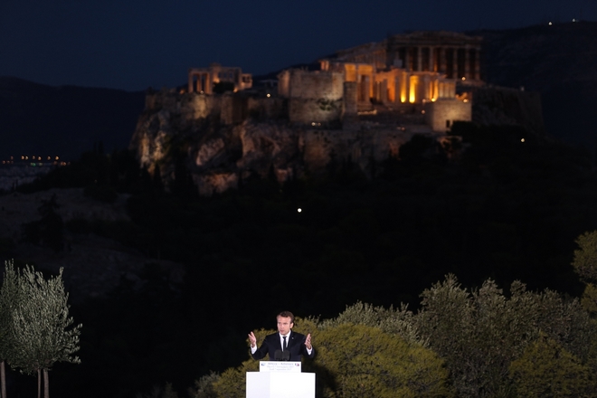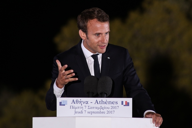 The President of France Emmanuel Macron, delivers his speech at the Pnyka Hill, in Athens, Greece, on September 7, 2017 / , , , , , 7 , 2017