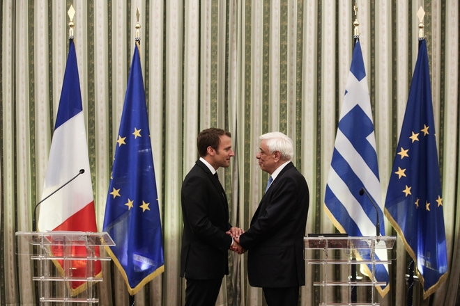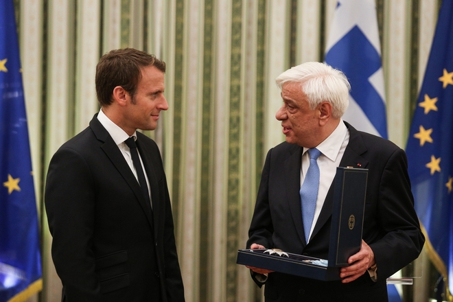 Medal Decoration of the President of France Emmanuel Macron, by the President of Greece Prokopis Pavlopoulos, at the Presidential Mansion in Athens, Greece, on September 7, 2017 / , , , , , , 7 , 2017