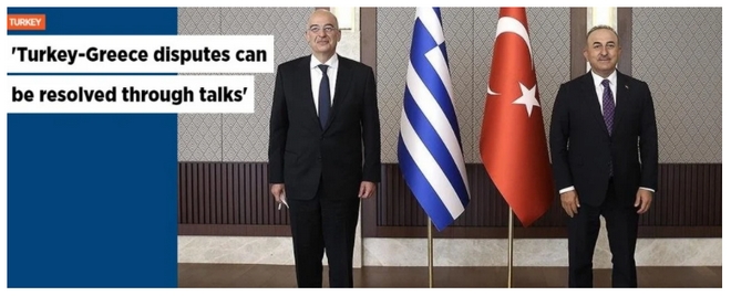 «Η Τουρκία πιστεύει ότι οι διαφορές με την Ελλάδα μπορούν να επιλυθούν μέσω εποικοδομητικού διαλόγου, διαμήνυσε ο Τούρκος υπουργός Εξωτερικών την Πέμπτη. Σε κοινή συνέντευξη Τύπου με τον Έλληνα ομόλογό του, Νίκο Δένδια, ο Μεβλούτ Τσαβούσογλου είπε ότι πρέπει να αποφεύγεται η προκλητική ρητορική στις σχέσεις μεταξύ των δύο χωρών» αναφέρεται χαρακτηριστικά.