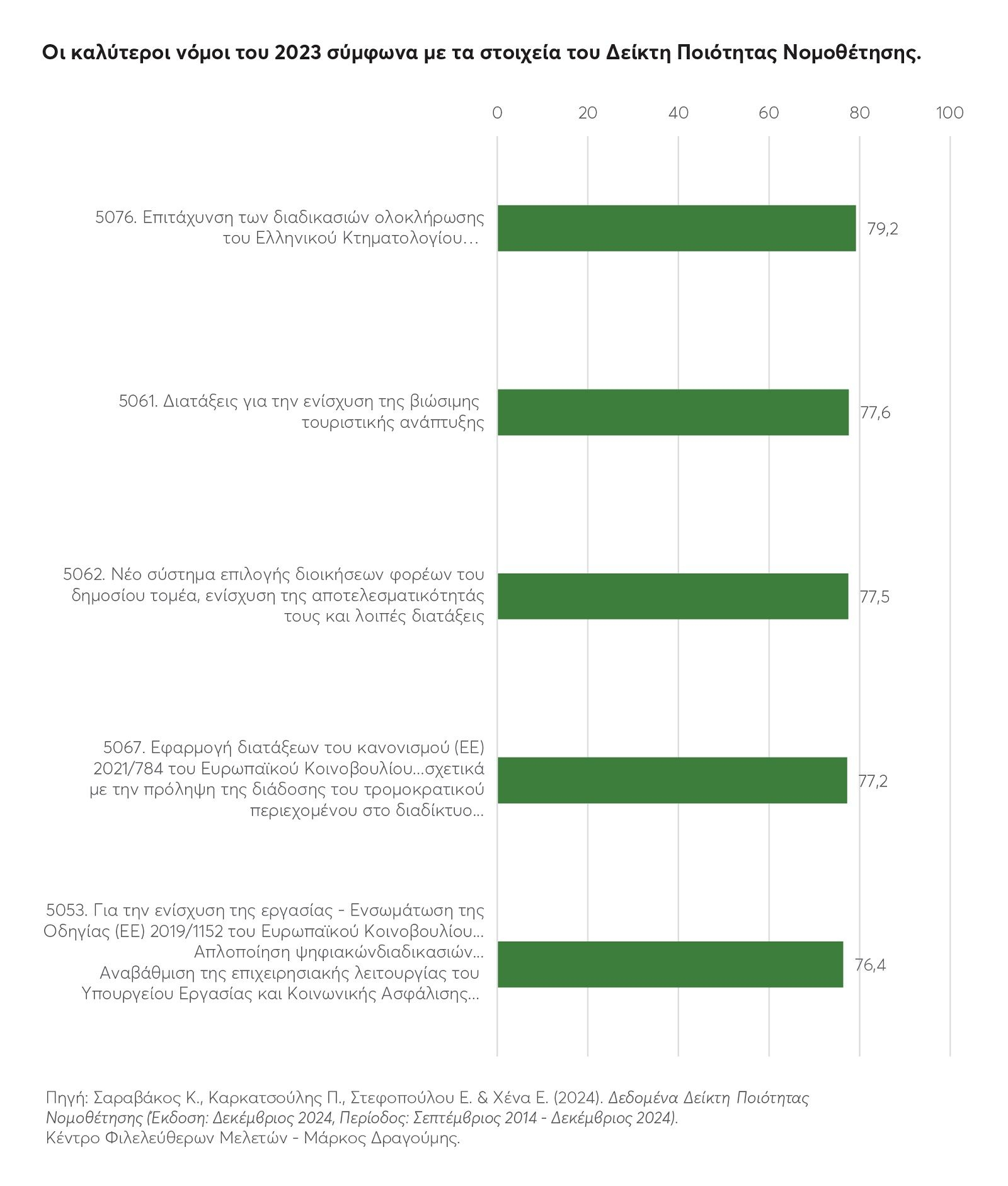 Οι 5 καλύτεροι νόμοι του 2023 σύμφωνα με τον Δείκτη Ποιότητας Νομοθέτησης ήταν: