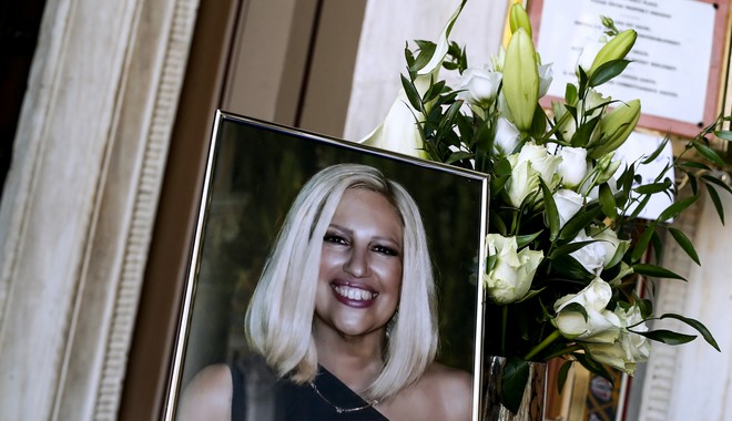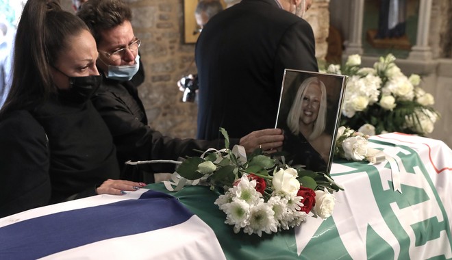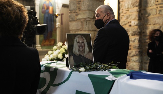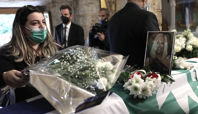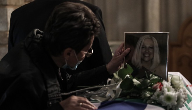 Η εξόδιος ακολουθία τελέστηκε χοροστατούντος του Αρχιεπισκόπου Αθηνών και Πάσης Ελλάδος Ιερωνύμου. Φανερά συντετριμμένοι, ο σύζυγός της Ανδρέας Τσούνης και τα τρία της παιδιά που μαζί με τους άλλους συγγενείς αποχαιρέτησαν τον δικό τους άνθρωπο.