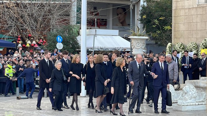 Εκατοντάδες πολίτες αποχαιρέτισαν τον τέως βασιλιά Κωνσταντίνο στο παρεκκλήσι του Αγίου Ελευθερίου. Η σορός του μεταφέρθηκε στον Μητροπολιτικό Ναό για την εξόδιο ακολουθία, ενώ ακολουθεί η ταφή της στο Τατόι.