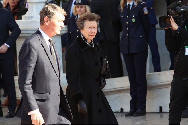 Έφτασε, επίσης, η πριγκίπισσα Άννα, κόρη της εκλιπούσας βασίλισσας Ελισάβετ Β’, η οποία εκπροσωπεί το βρετανικό στέμμα, συνοδευόμενη από τον δεύτερο σύζυγό της. Ο βασιλιάς Κάρολος Γ’, ξάδερφος του τέως βασιλιά και ο βαφτιστήρας του Κωνσταντίνου, πρίγκιπας Γουίλιαμ, δεν αναμένεται να δώσουν το παρών.