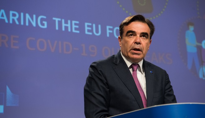 Τα κεντρικά σημεία της πρότασης της Ευρωπαϊκής Επιτροπής για την αντιμετώπιση της νέας έξαρσης της πανδημίας στην Ευρώπη, παρουσίασαν Μαργαρίτης Σχοινάς και Στέλλα Κυριακίδου