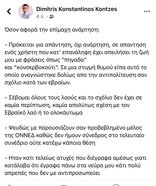 O ίδιος με νέα ανάρτησή του διευκρινίζει -μεταξύ άλλων- πως η ανάρτηση ηταν απάντηση σε άλλη και τη διέγραψε γιατι κατάλαβε οτι την έγραψε πάνω στα νεύρα του.