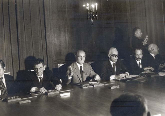 Ο Κωνσταντίνος Καραμανλής το 1974 σε συνεδρίαση του υπουργικού συμβουλίου Αρχείο Ιδρύματος 'Κωνσταντίνος Καραμανλής"