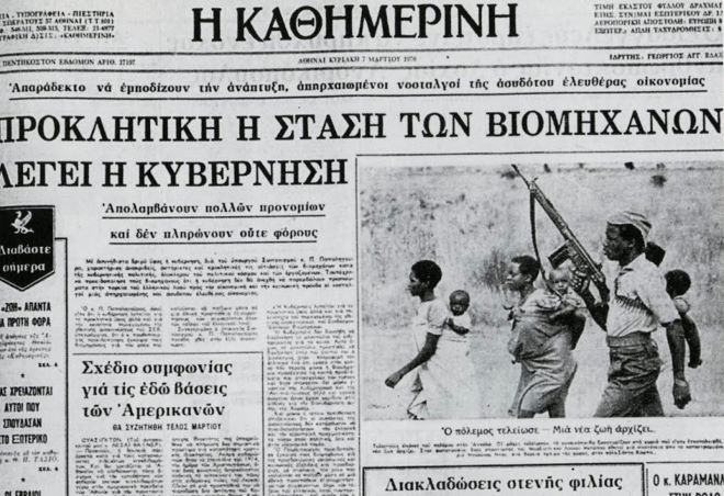 Πρωτοσέλιδο της εφημερίδας "Καθημερινή" στις 7 Μαρτίου του 1976