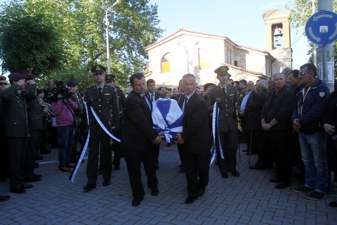 Την νεκρώσιμη ακολουθία, που τελέστηκε στον ιερό ναό Αγίων Κωνσταντίνου και Ελένης στη Φαλάνη Λάρισας, παρακολούθησαν μεταξύ άλλων ο υπουργός Άμυνας Πάνος Καμμένος, η ηγεσία του στρατεύματος, στελέχη των Ενόπλων Δυνάμεων, ο υφυπουργός Αγροτικής Ανάπτυξης Βασίλης Κόκκαλης, ο περιφερειάρχης Θεσσαλίας Κώστας Αγοραστός, ο δήμαρχος Λάρισας Απόστολος Καλογιάννης, βουλευτές και περιφερειακοί σύμβουλοι.