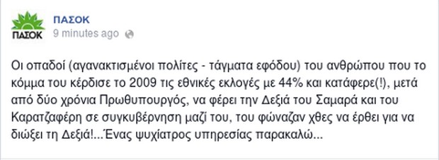 Η επίμαχη ανάρτηση, η οποία «κατέβηκε» από το επίσημο facebook του ΠΑΣΟΚ, ήταν η εξής: