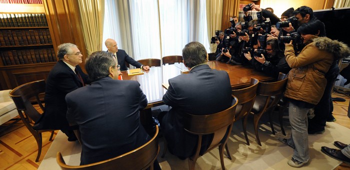 21:30 Σαμαράς και Καρατζαφέρης δήλωσαν ότι διαφωνούν, ωστόσο η ανακοίνωση του Λουκά Παπαδήμου αναφέρεται σε “συμφωνία στα βασικά θέματα”.