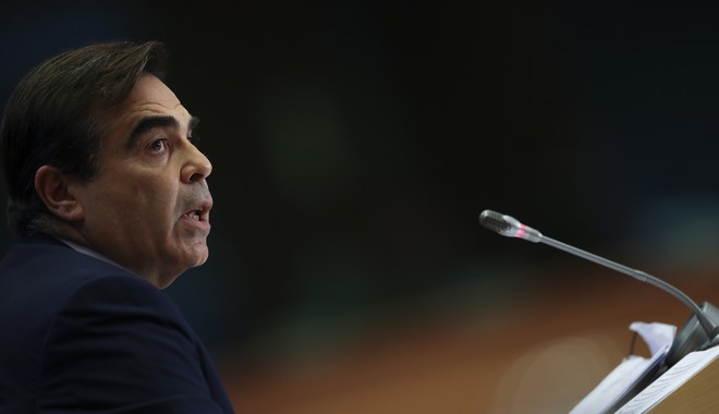 Ο Μαργαρίτης Σχοινάς κατά την ακρόασή του στο Ευρωκοινοβούλιο AP