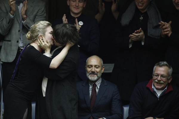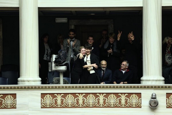 Με φιλιά στα θεωρεία της Βουλής υποδέχθηκαν το Σύμφωνο Συμβίωσης