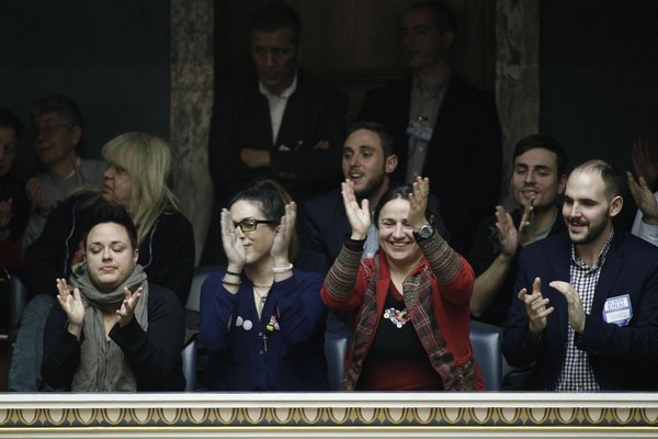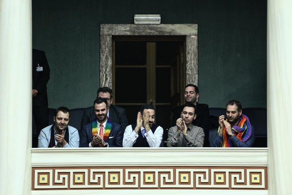 Στα θεωρεία της Βουλής βρέθηκαν μέλη της ομοφυλοφιλικής και λεσβιακής κοινότητας Ελλάδος, τα οποία παρακολουθούν τη συζήτηση, και “πανηγύρισαν” με τη ψήφιση του νομοσχεδίου. Ανάμεσά τους ήταν και ο δημοσιογράφος Γρηγόρης Βαλιανάτος.