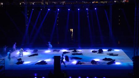 Το Στάδιο Ειρήνης και Φιλίας είχε γεμίσει ασφυκτικά από νωρίς το απόγευμα, αρκετή ώρα πριν κάνουν την εμφάνιση τους στην εξέδρα οι δεκάδες συντελεστές, επαγγελματίες και ερασιτέχνες μουσικοί και ηθοποιοί, όλοι τους εθελοντές. Σχεδόν 15.000 άνθρωποι παρακολούθησαν το υπερθέαμα που σχεδίασε ο Περισσός που βασιζόταν σε κείμενα των Κ. Μαρξ, Φρ. Ένγκελς, Β. Ι. Λένιν, Ι. Β. Στάλιν, Ρ. Λούξεμπουργκ, Λ. Γκιούρκο, Τζ. Ριντ, Βλ. Μαγιακόφσκι και Μπ. Μπρεχτ. και άκουσαν την ομιλία του Δημήτρη Κουτσούμπα, με το σύνθημα «Το μέλλον δεν είναι ο καπιταλισμός είναι ο νέος κόσμος ο σοσιαλισμός» να κυριαρχεί στις εξέδρες του φαληρικού σταδίου.