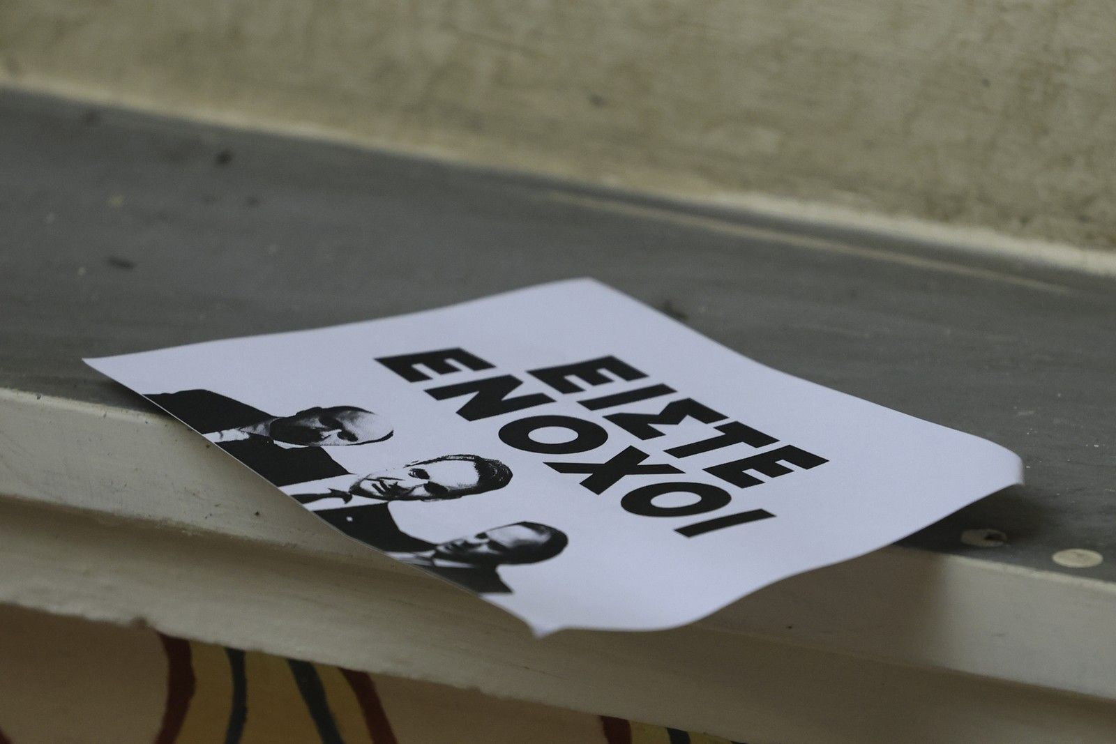 Στα τρικάκια που πέταξαν τα τρία παιδιά υπήρχε τυπωμένη η φράση “φύγετε” μαζί με τα πρόσωπα του Πρωθυπουργού Κυριάκου Μητσοτάκη, του πρώην Υπουργού Μεταφορών Κώστα Καραμανλή και του πρώην Υφυπουργό παρά τω Πρωθυπουργό Χρήστου Τριαντόπουλου.