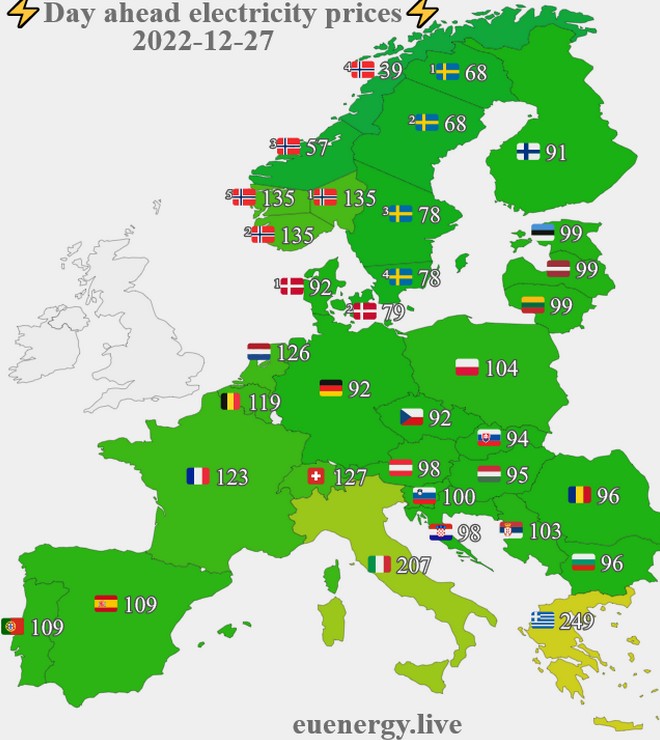 Έναν χάρτη με τις τιμές ενέργειας στην Ευρωπαϊκή Ένωση δημοσίευσε το ΜέΡΑ25, αναδεικνύοντας την ενεργειακή ακρίβεια στη χώρα την οποία χαρακτήρισε "πρωταθλήτρια" και τον πρωθυπουργό "πρωταθλητή στις... εισαγωγές".