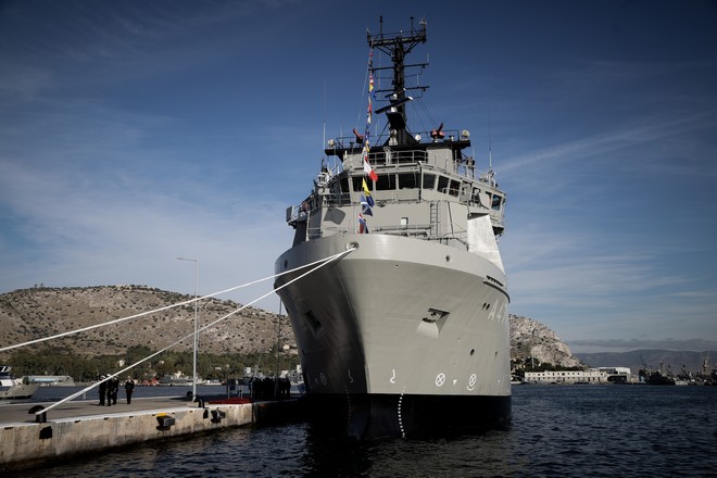 Παρουσία του ΠτΔ Προκόπη Παυλόπουλου η τελετή ονοματοδοσίας του πλοίου υποστήριξης Άτλας, στο ναύσταθμο της Σαλαμίνας Eurokinissi