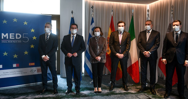 Η Ευρώπη «πρέπει να εφαρμόσει μια αυστηρή αλλά δίκαιη μεταναστευτική πολιτική» εξήγησε ο κ. Μηταράκης κατά τη διάσκεψη με υπουργούς της Ισπανίας, της Ιταλίας, της Κύπρου και της Μάλτας.